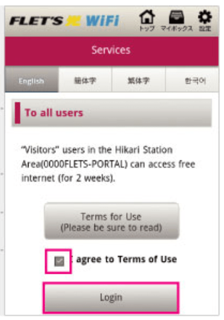 NTT free wifi connection step 3