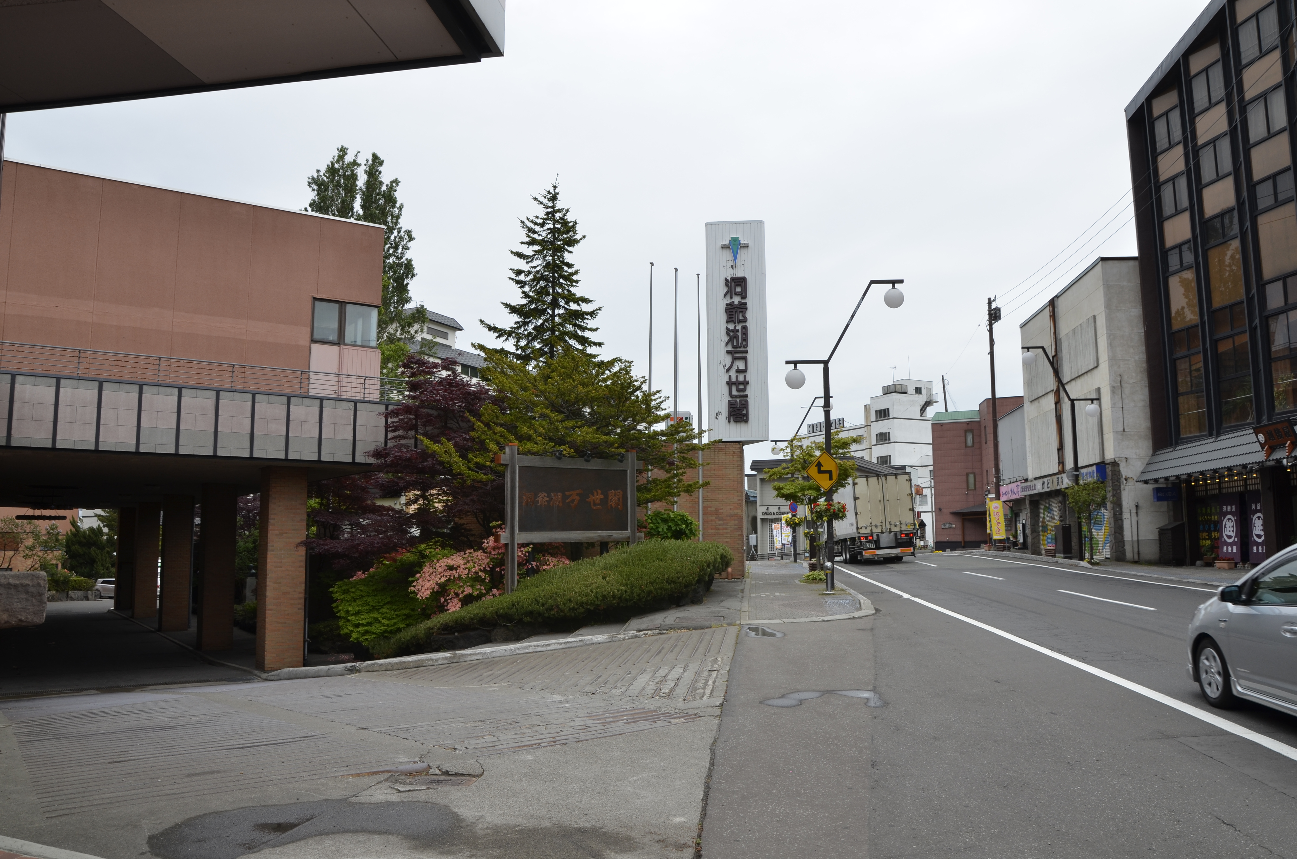 由這十字大路口往下走便是洞爺湖畔的觀光船碼頭